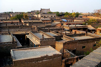 城内的深宅大院,票号镖局,掩盖在灰屋顶下,藏而不露,反而是那些寻常人家,风景完全是敞开的。拱形门窗,风水墙,风水楼,砖窑洞式小四合院,院子里金黄的玉米,红辣椒串,艳的分外醒目。